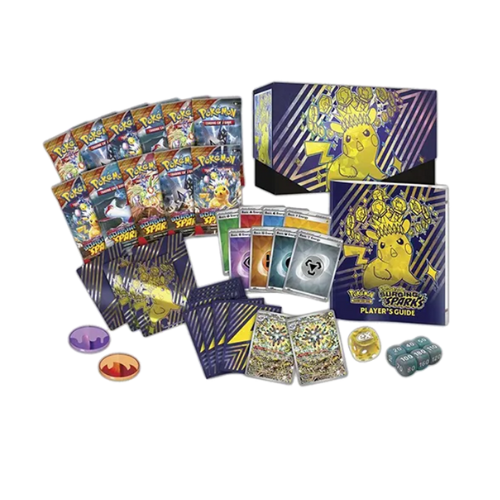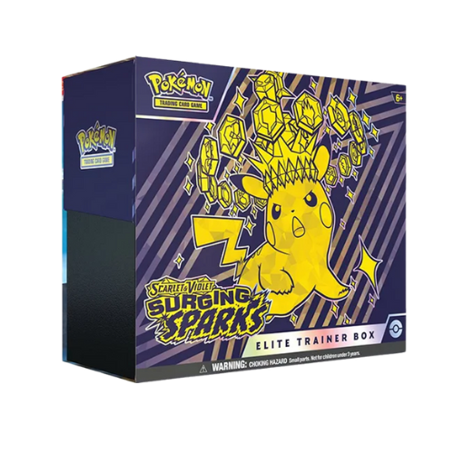 La Elite Trainer Box de Surging Sparks es el complemento perfecto para coleccionistas y jugadores de Pokémon TCG. Incluye 9 sobres de Surging Sparks, 65 fundas con diseño exclusivo, 45 cartas de Energía y una guía de estrategia del set. También trae 6 dados contadores de daño, 2 marcadores acrílicos y una caja de colección con separadores para organizar tus cartas. ¡Prepárate para la batalla y descubre nuevas cartas poderosas en esta misteriosa expansión!